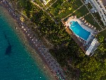 Píšečná pláž s okruhliakmi cca 50 m od hotela, prístupná po schodoch alebo okolo po chodníku. Na dne hrubší piesok, hlbší vstup do mora. Lehátka a slnečníky oproti konzumácii v plážovom bare (min. 2,50 EUR na osobu), osušky zdarma.