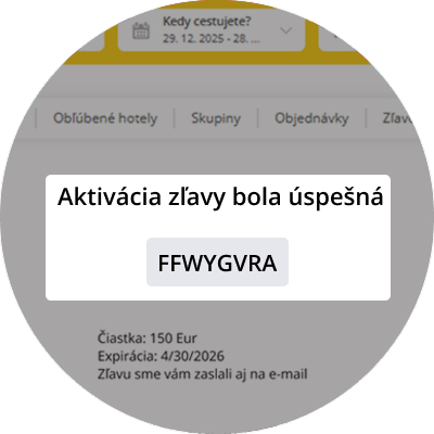 Počas online objednávky v košíku v kroku „Platba“ kliknite na „Pridať zľavový kód“, vložte ho a potvrďte. Celková cena zájazdu sa po zadaní kódu okamžite zníži.