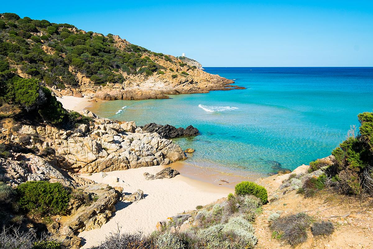 • Chia, dlouhá pláž Chia, dlouhá pláž